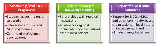 The Scholarship/Professional Development Programme will help to create a cadre of professionals who are playing a key role in developing national and regional strategies that will lead to improved disaster risk management and increased climate change resilience.